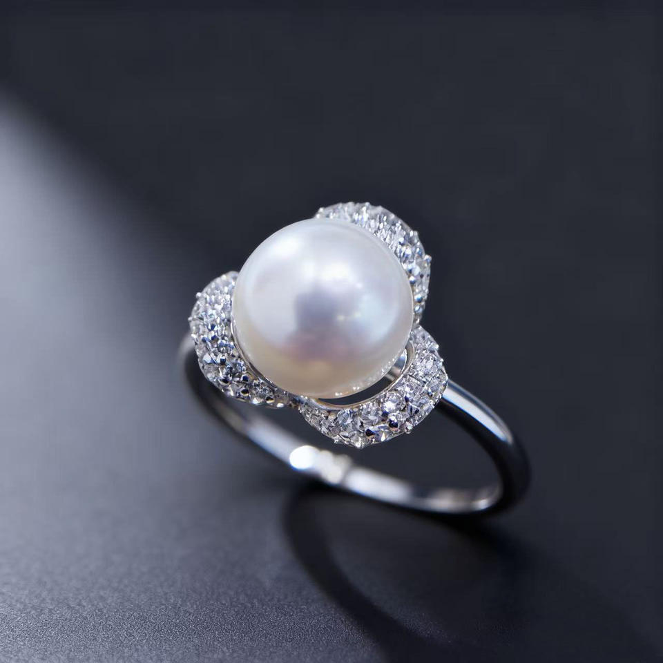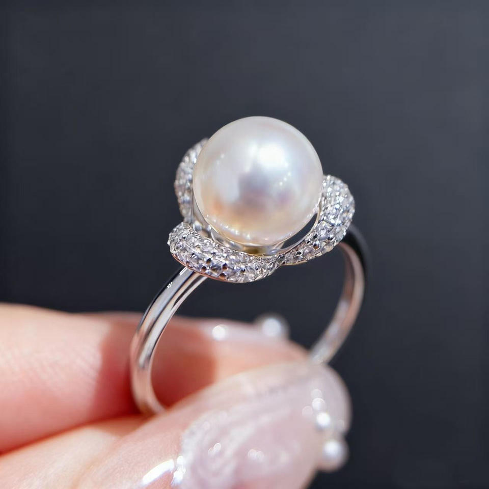 10752 DIY Pearl Accessories S925 Silver Ring Empty Holder Gold/Silver Fashionable Decoration with 7-9mm Round Loose Pearls