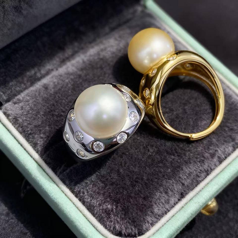 Support de bague en argent S925 10765DIY avec perles rondes de 5-6 mm, or/argent, accessoires et composants de bijoux multicolores