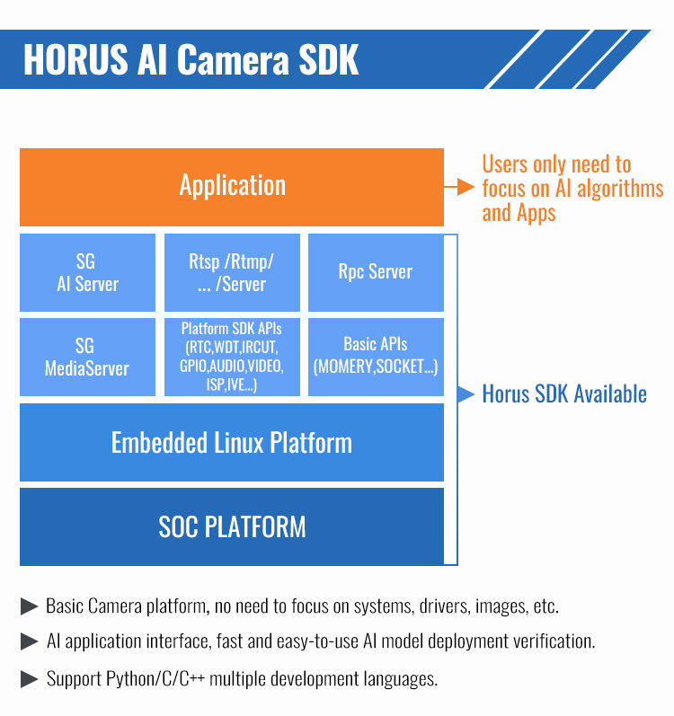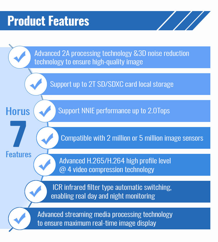 Vision nocturne, Reconnaissance des visages, L'homme De Suivi De Mouvement, Détection de mouvement, Détection sonore, Compter les gens, Mesure de la température, Détection de visage, Faible PuissanceUsages spéciaux