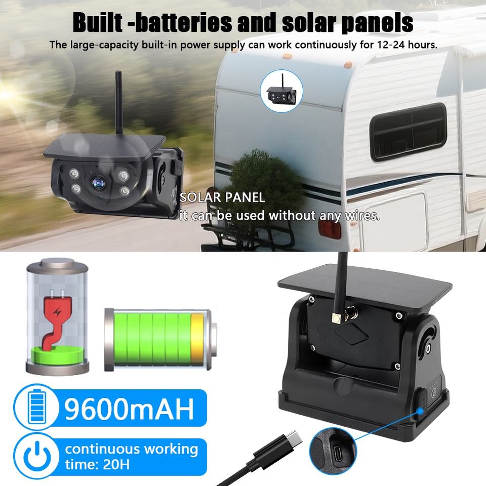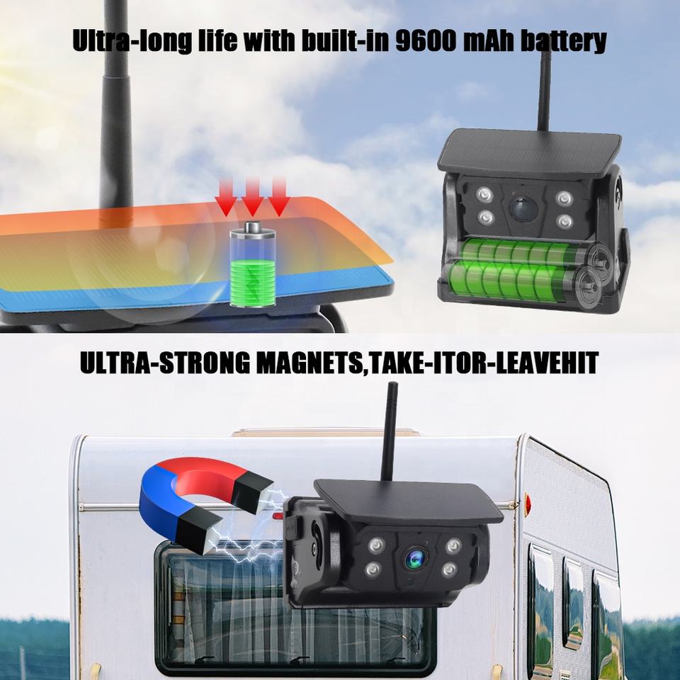 Système de caméra de recul numérique sans fil 1080P avec moniteur 7 pouces et caméra magnétique rechargeable à énergie solaire pour semi-remorques et bus