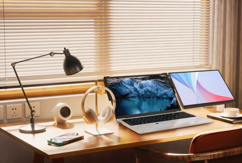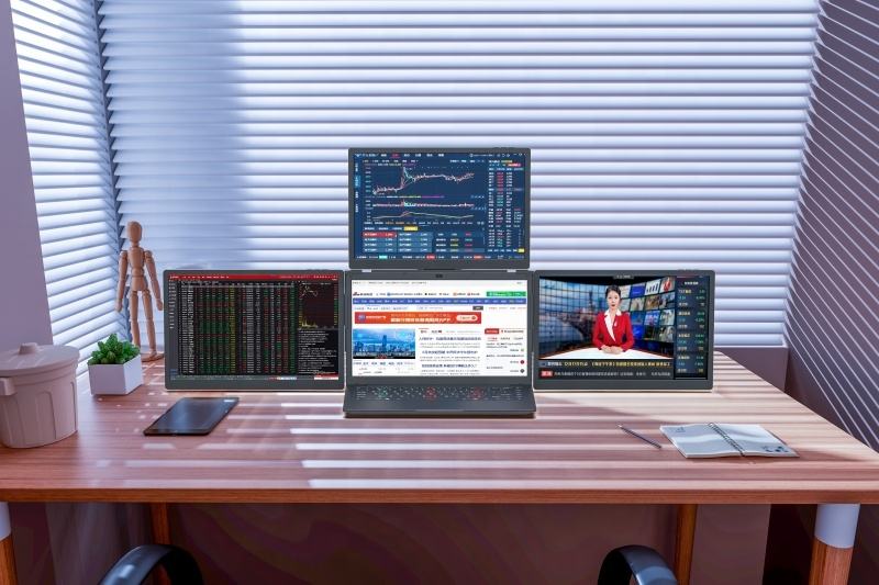 Moniteur portable pliable à double écran quadruple 13 pouces 1080P FHD, triple extension d'écran pour PC, support intelligent pour jeux