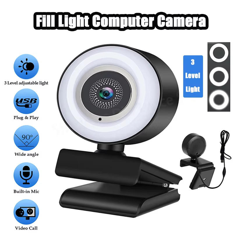 1080P Mini Caméra Full HD Webcam Avec Anneau Lumière Microphone USB Diffusion En Direct Pour Youtube PC Ordinateur Portable Prise De Vue Vidéo