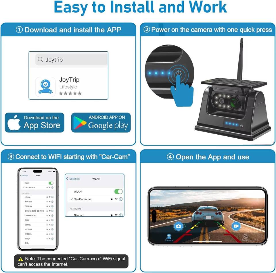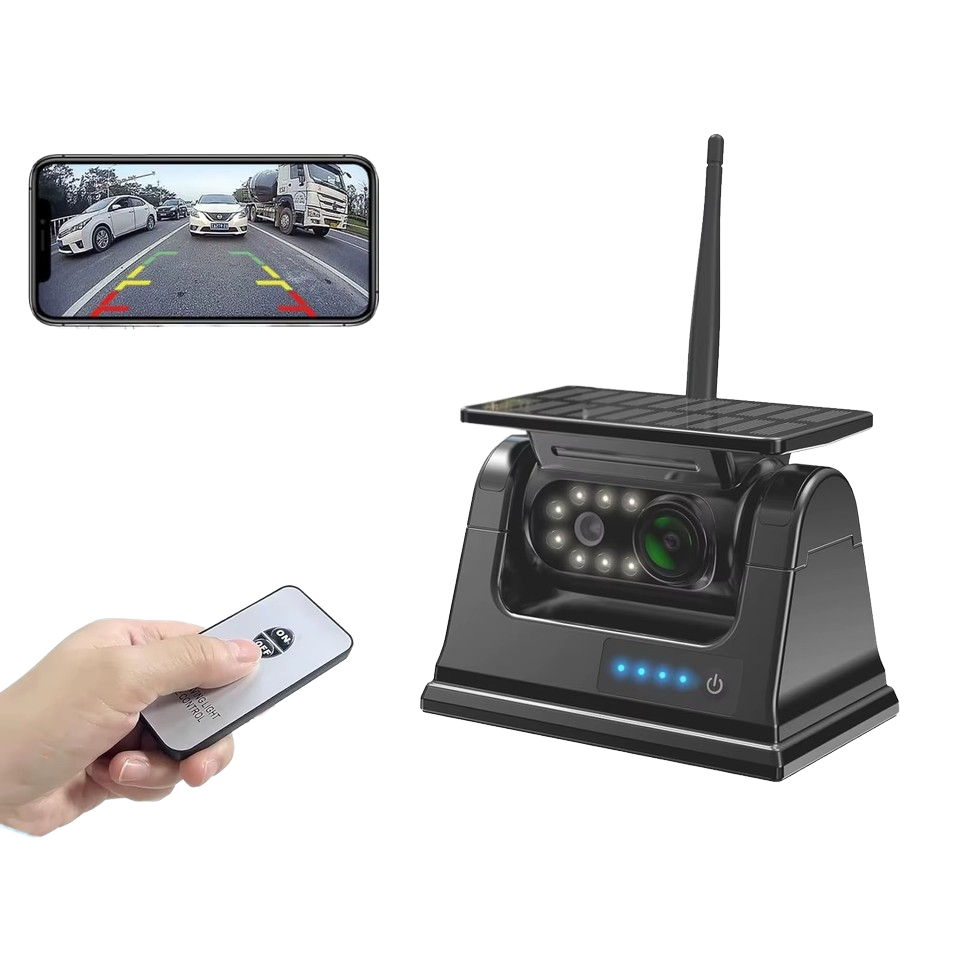Caméra de recul solaire sans fil 1080P pour remorques de camion RV campeurs CCD AHD caméra de recul Rechargeable Base magnétique WiFi APP