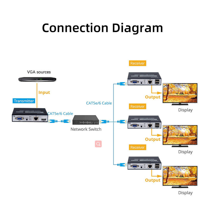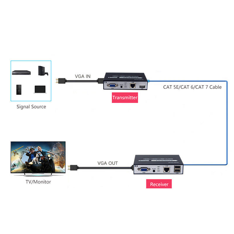 Extension KVM VGA 1080P sur câble Ethernet Cat5e/Cat6/Cat7 jusqu'à 328ft avec audio USB