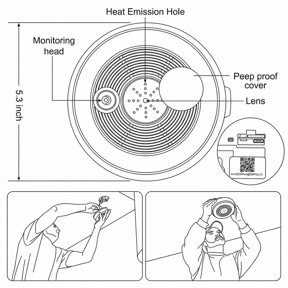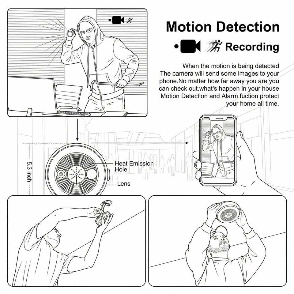 Caméra détecteur de fumée WiFi 1080P avec vision nocturne