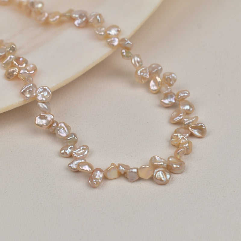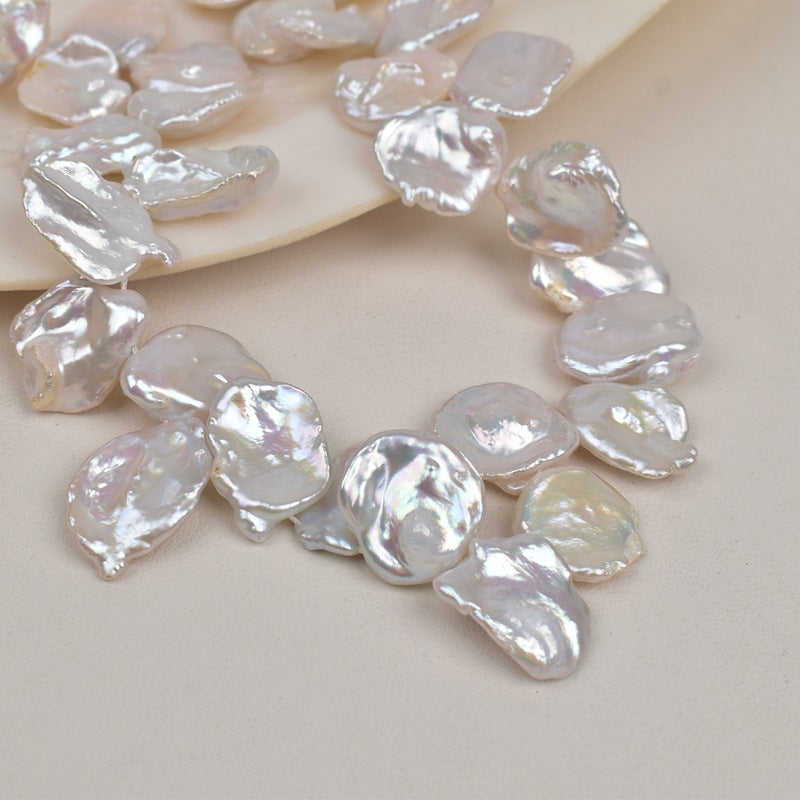 WENCHI 1081 Perles en vrac - Perles d'eau douce baroques naturelles argentées grises et blanches, pétales de Panax Notoginseng, 36-38 cm, beauté naturelle