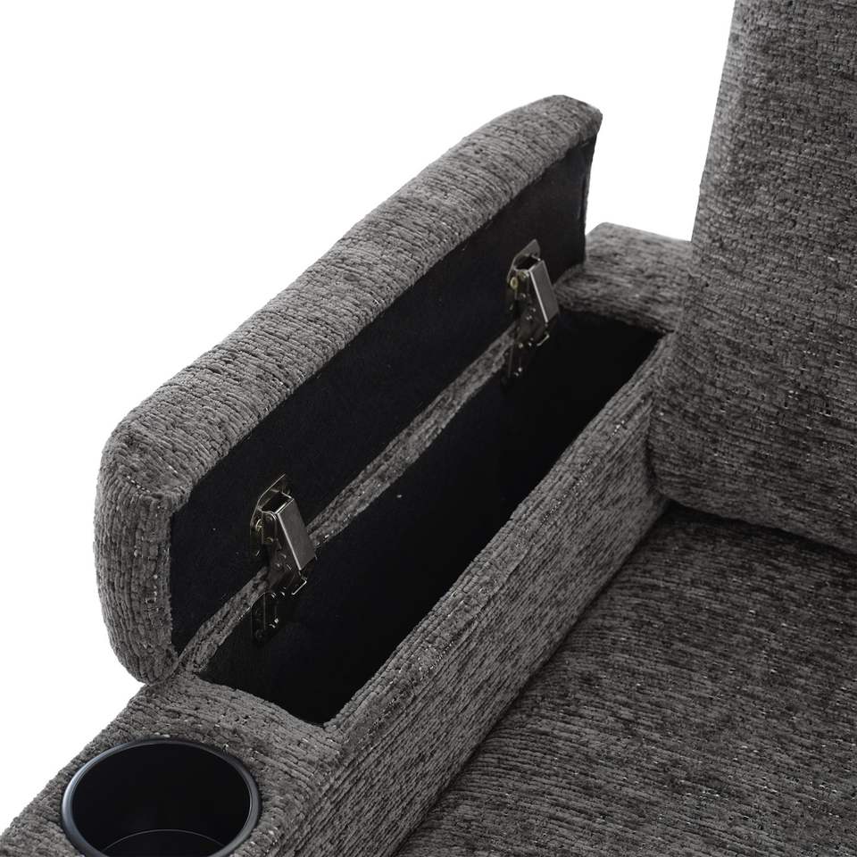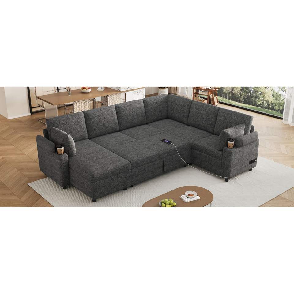 Canapé-lit sectionnel en forme de U de 109.9 pouces avec un grand rangement, deux porte-gobelets et ports de charge polyvalent beige/gris pour le salon