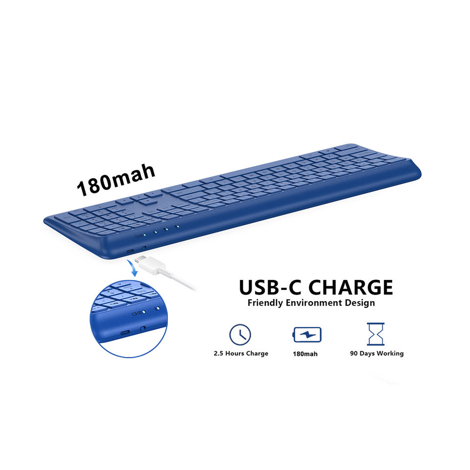 Clavier sans fil rechargeable bluetooth incurvé pleine grandeur 109 touches clavier sans fil de langue espagnole Compatible avec apple