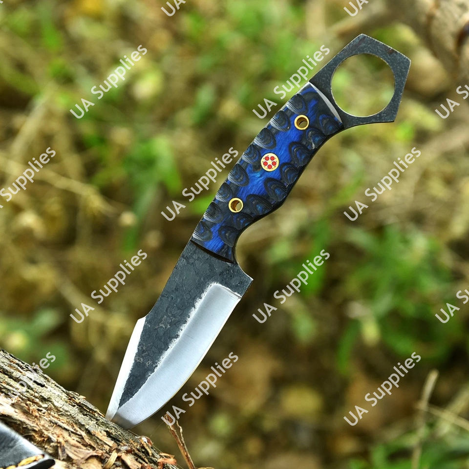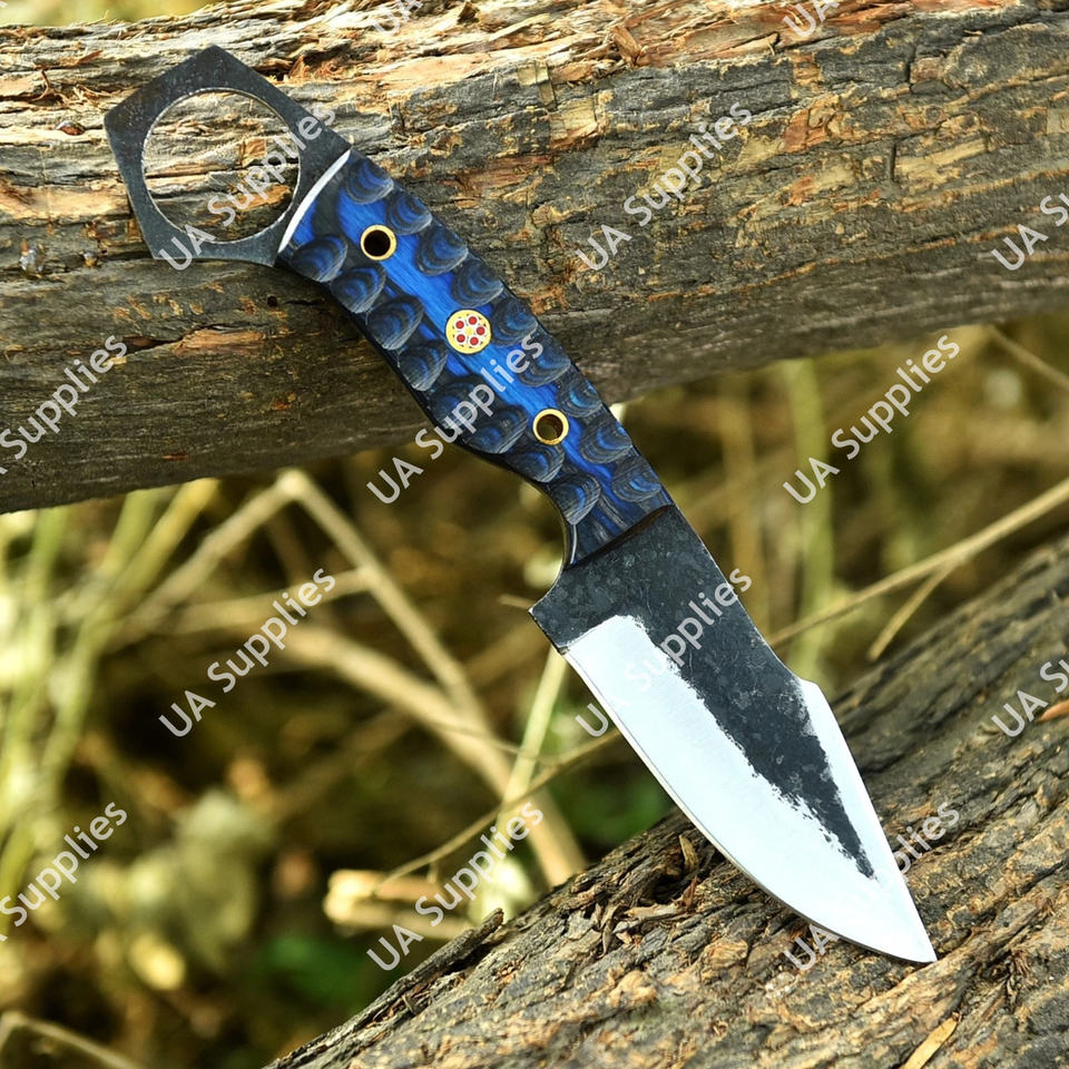 Couteau de chasse et de camping EDC Skinner en acier à haute teneur en carbone 1095, forgé à la main, ultra-affûté, avec trou pour le pouce, étui en bois Pakka – Le meilleur choix pour un cadeau