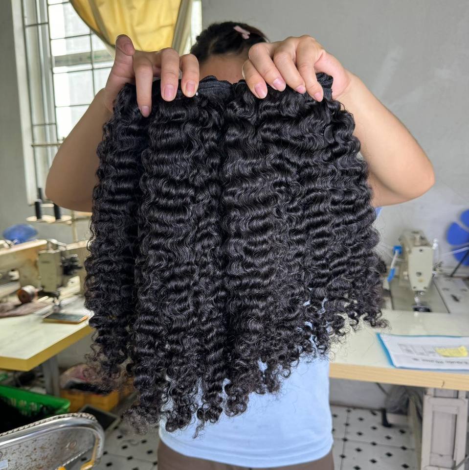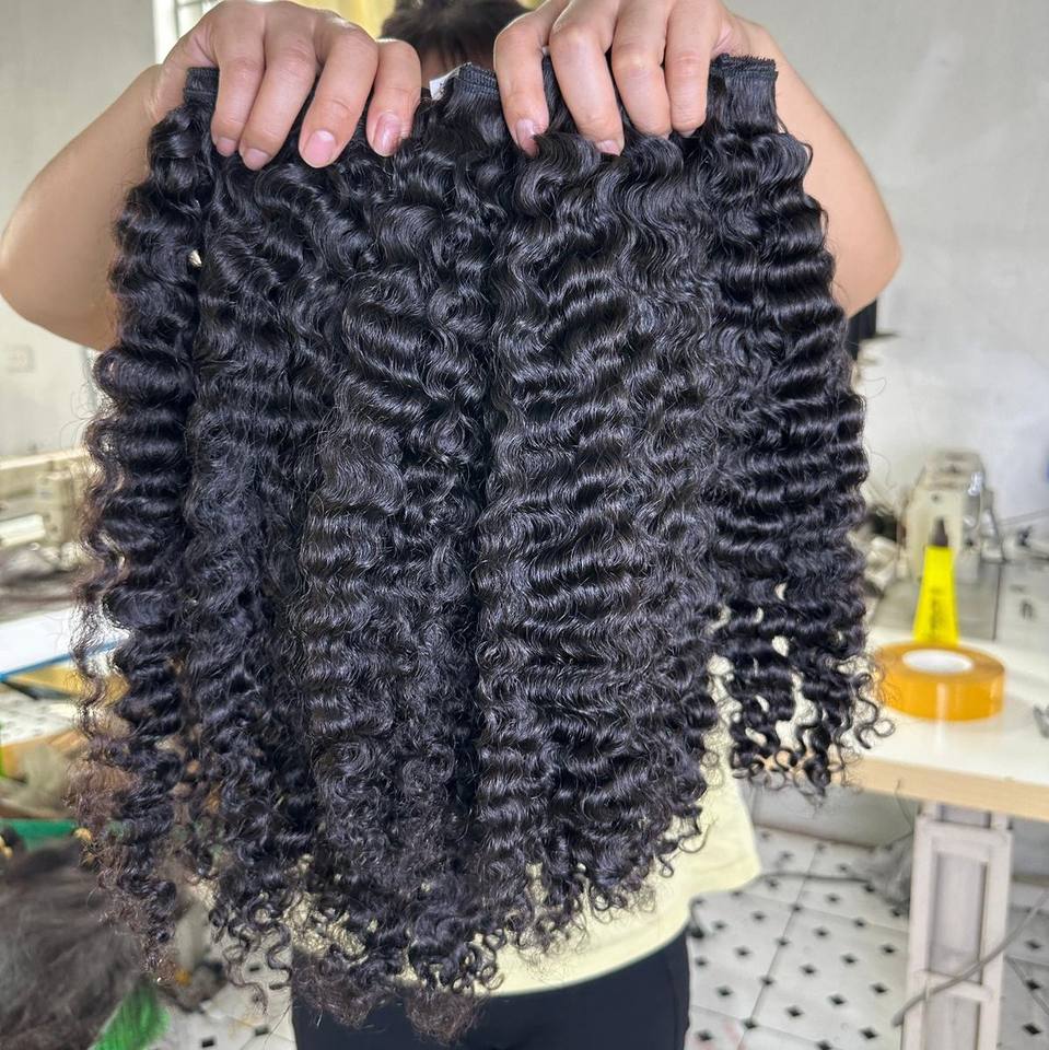 10A Vietnamese Virgin Qhair Smooth and Silky High Quality Raw Hair Black Burmese Curl Double Drawn Bundles From Qhair