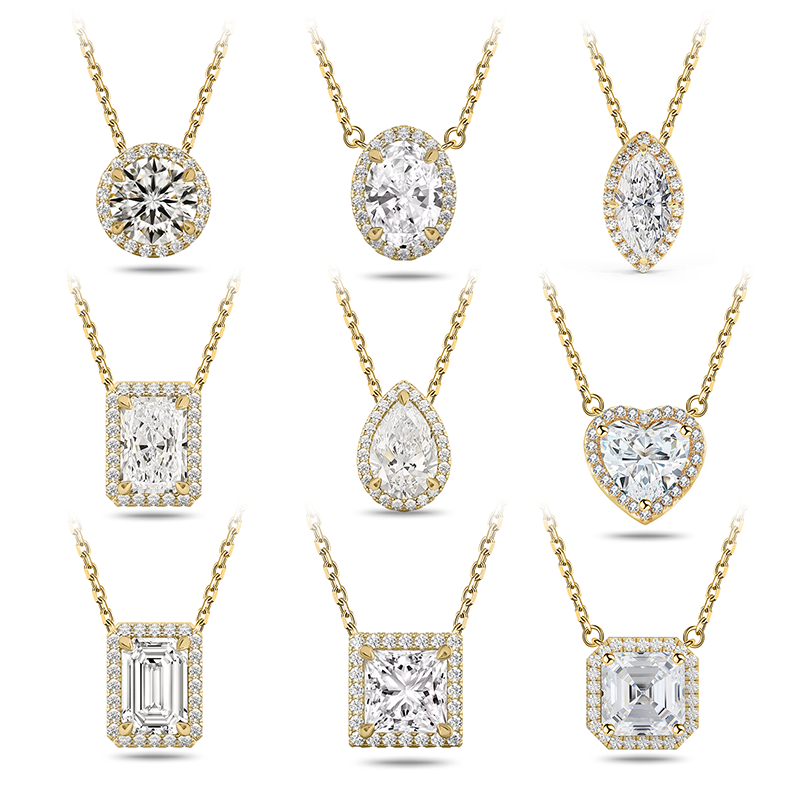 Collier en or 10 carats avec diamant de forme fantaisie cultivé en laboratoire DEF VS 40+5cm Chaîne en or blanc jaune avec diamant - Pendentif pour anniversaire de mariage