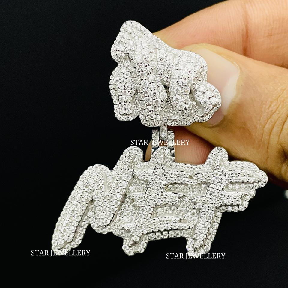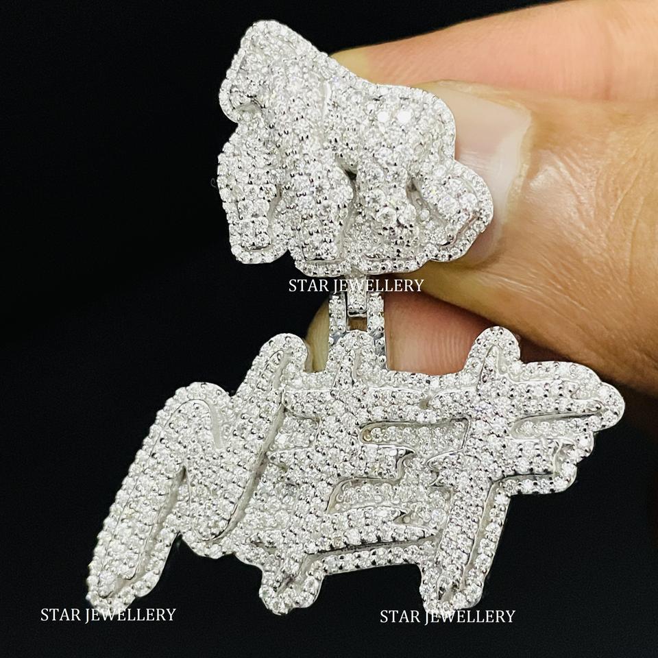 Pendentif en or 10 carats serti de diamants de laboratoire, plaqué or chrétien, personnalisé, unisexe, hip-hop, coupe ronde brillante, lettre