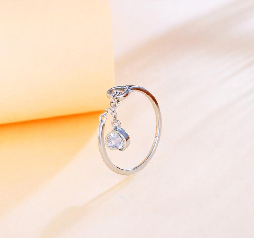 Bague pendante avec chaîne en forme de cœur