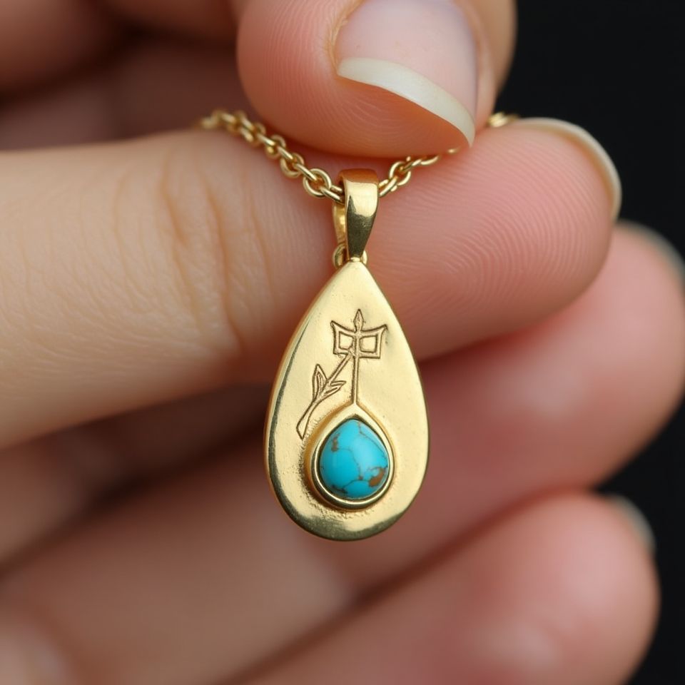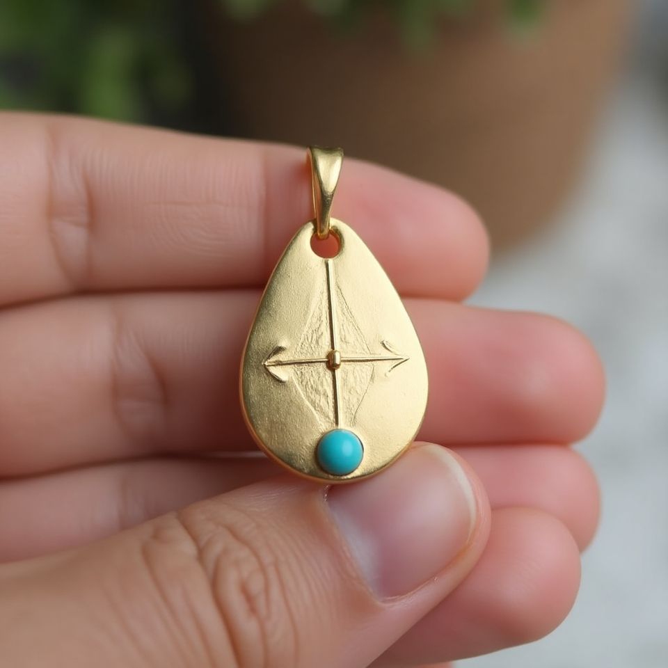 10K Solid Gold Sagittarius Zodiac Pendant Luxury Jewelry with Turquoise Gemstone Link Chain Necklace for Women