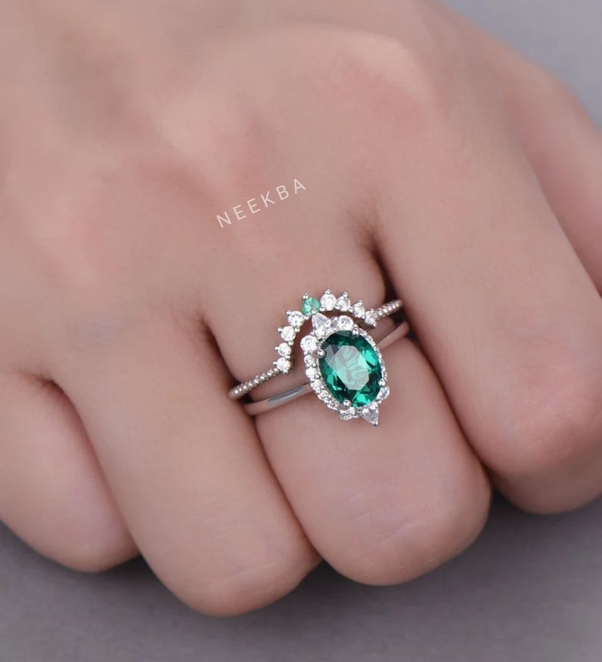 Wedding Band Stones:Lab-Emerald, Moissanite