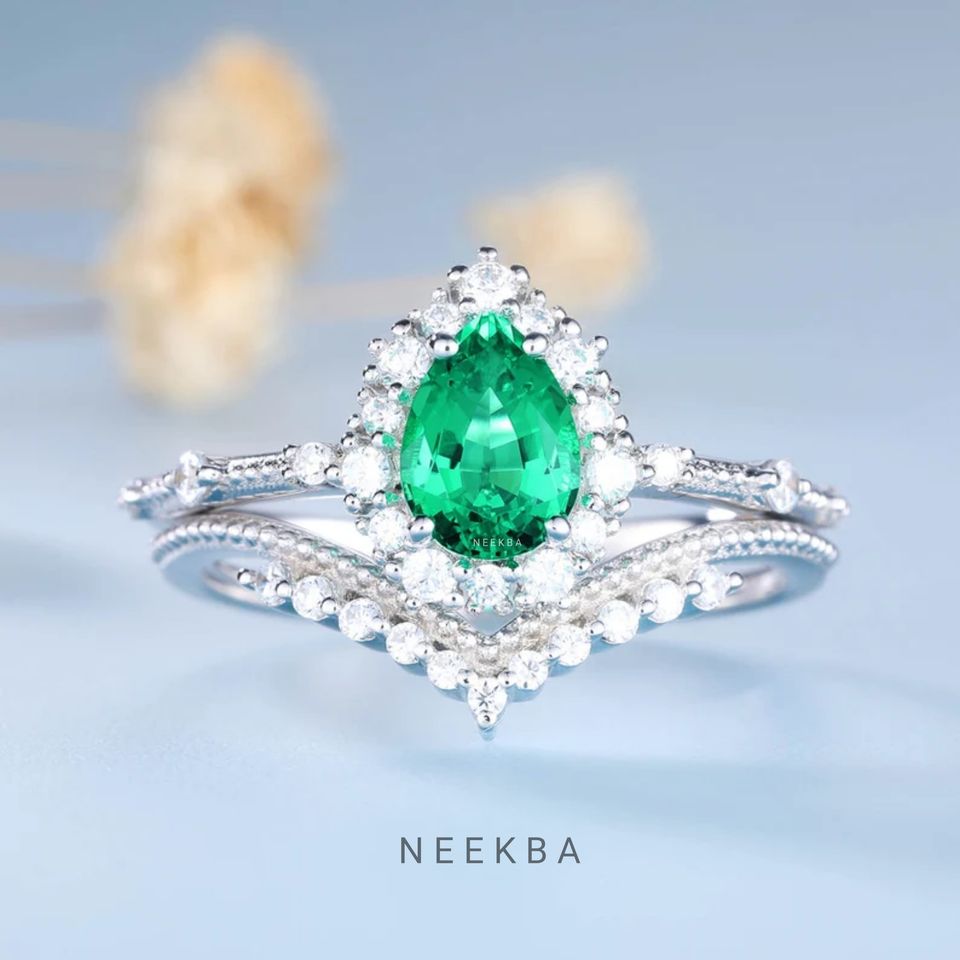 Ensemble de bague de mariage émeraudeType d'anneaux