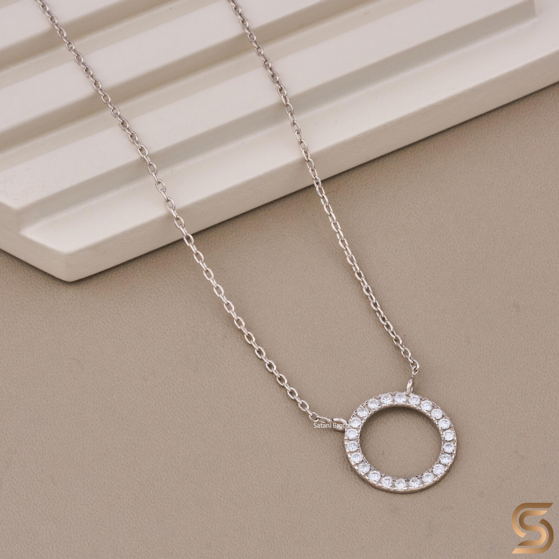 Collier pendentif cercle en or blanc massif 10K avec diamant de laboratoire, collier minimaliste halo de diamants, collier cercle ouvert rond
