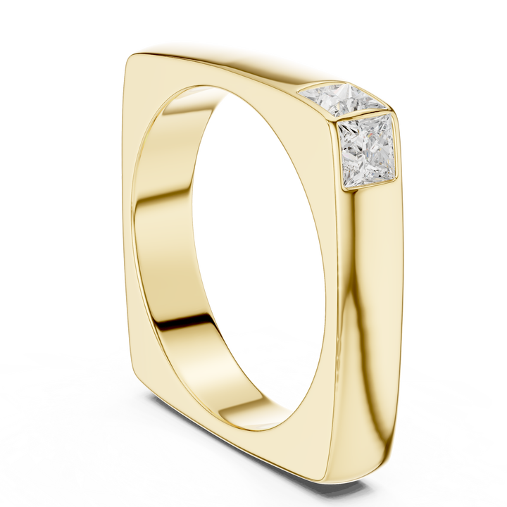 Bague solitaire de luxe pour homme en or jaune 10K avec diamant de laboratoire taille princesse, sertissage minimal, élégance et signature