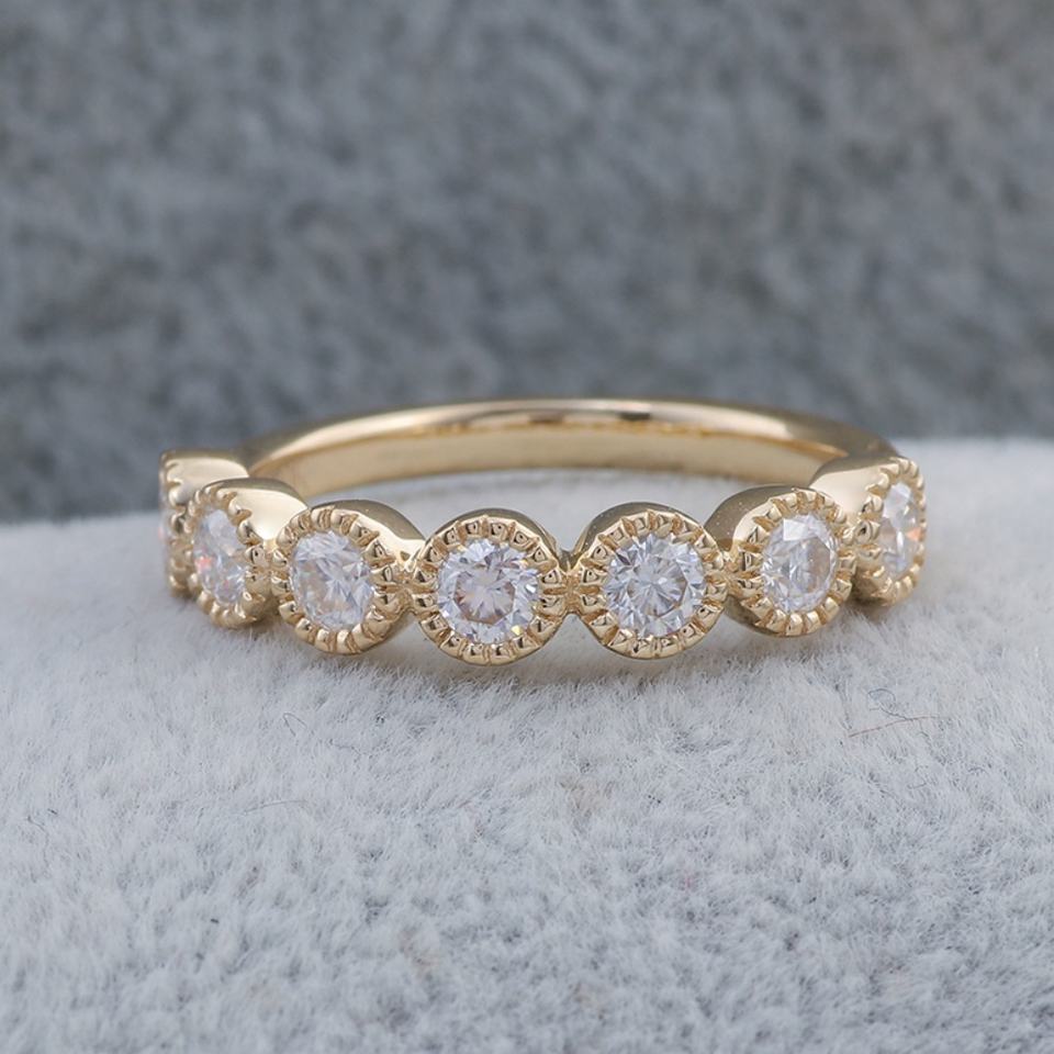 Bague en or jaune 10 carats avec diamant de laboratoire, cadeau d'anniversaire de mariage, bijoux fins, bague demi-cercle personnalisée, ronde, à porter tous les jours