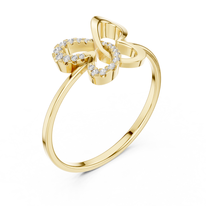 Bague ouverte en or jaune 10K avec diamant de laboratoire taille ronde, motif papillon, moins d'un carat, plaqué or de luxe pour femme