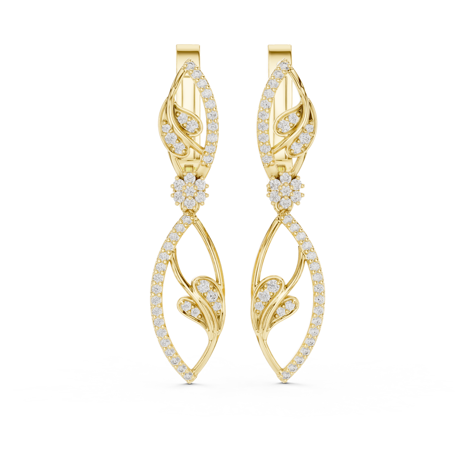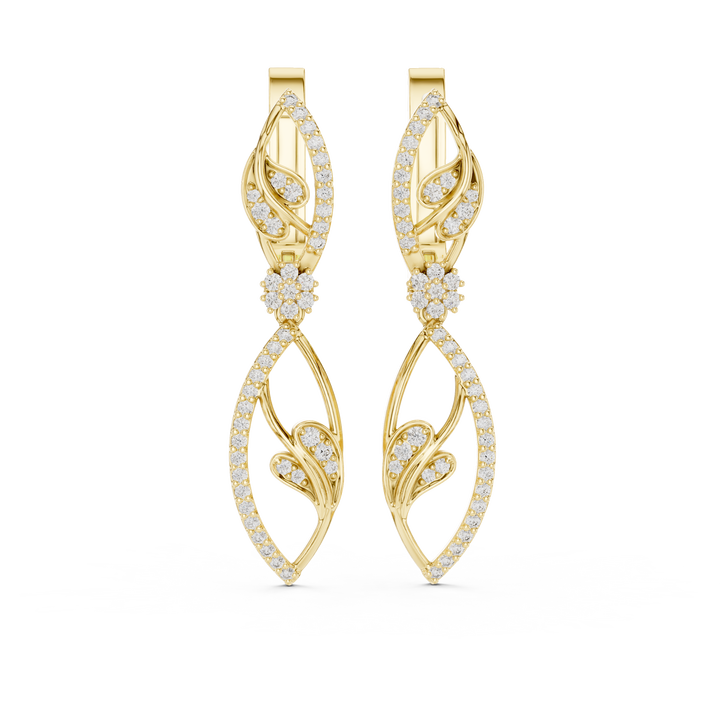 Boucles d'oreilles pendantes de luxe pour femme en or jaune 10K avec diamant de laboratoire taille ronde, motif feuille, moins d'un carat, or rose, blanc, jaune