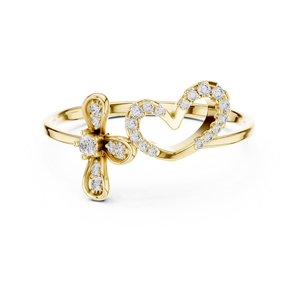 Bague de Foi en Or Jaune 10K avec Diamant de Laboratoire Taille Ronde et Motifs Cœur & Croix, Moins de 1 Carat, pour Femme, Luxe, Or Rose, Blanc, Jaune