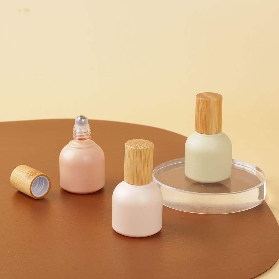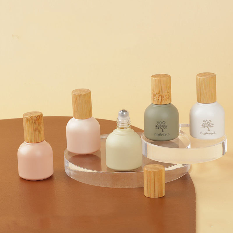 Bouteille ronde de graisse Morandi 10ML tricolore + boule en acier + bouchon en bois de bambou bouteilles de parfum bouteilles de distributeur d'huile essentielle