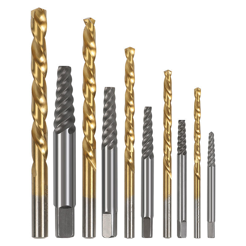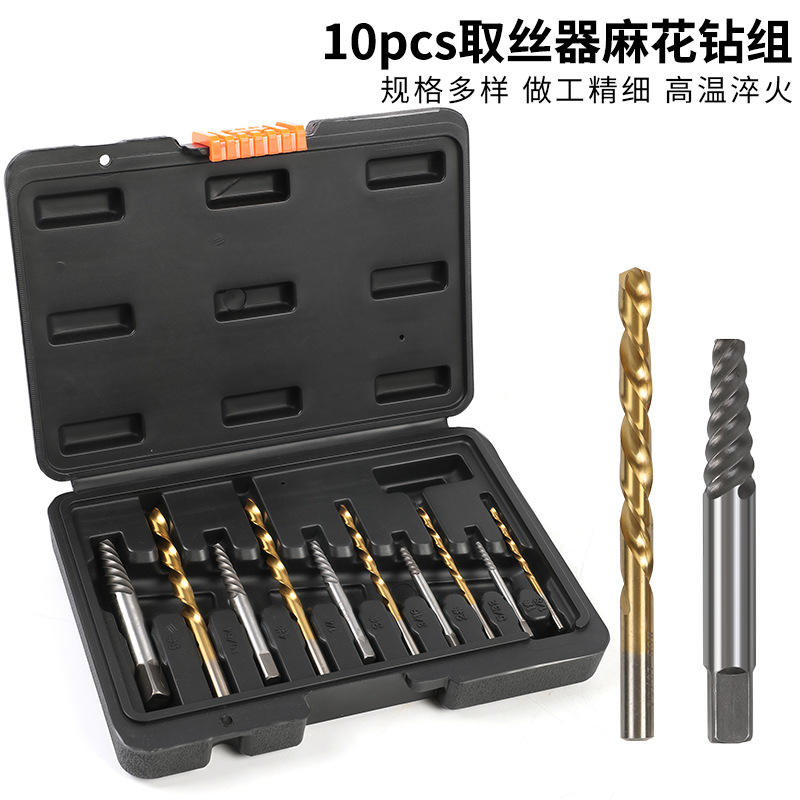 Jeu de 10 forets à filetage grossier en acier rapide, extracteur de vis cassées, kit de perçage en acier rapide