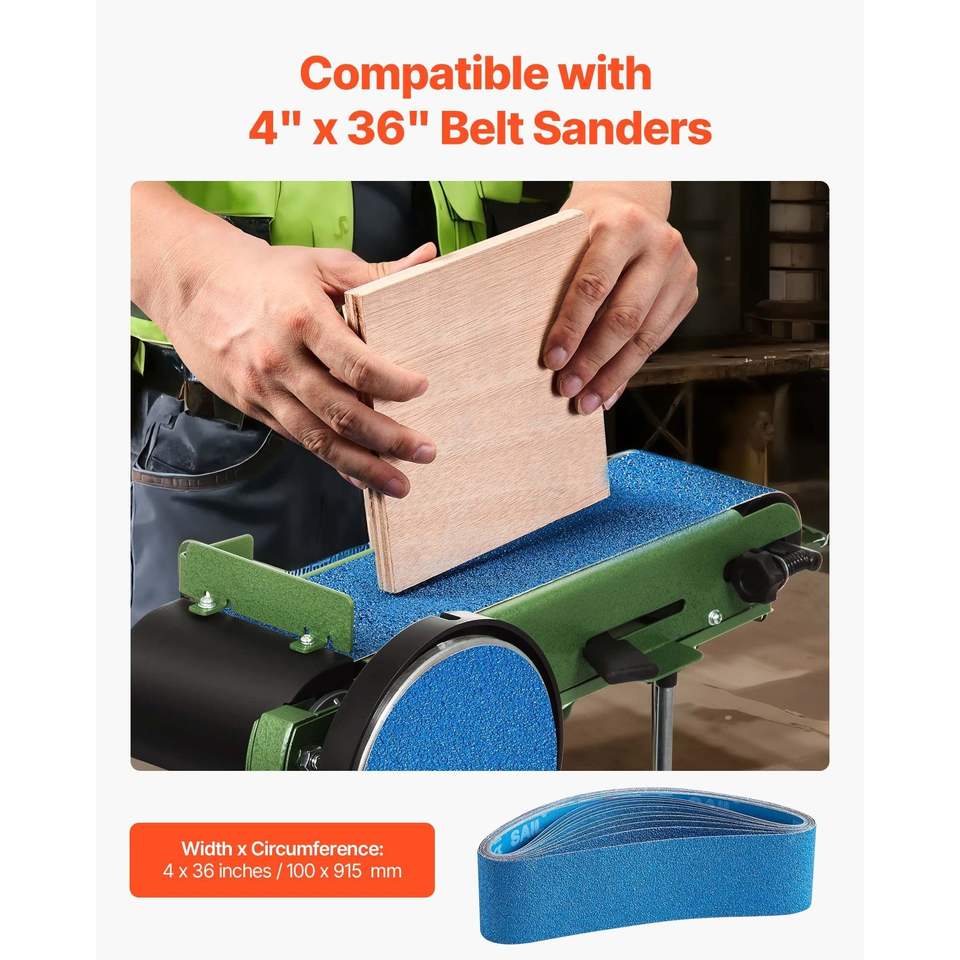 10 bandes abrasives de 4 x 36 pouces pour affûtage de couteaux, zircone M, grains 40, 60, 80, 120, 240 pour ponceuse à bande - Outils abrasifs