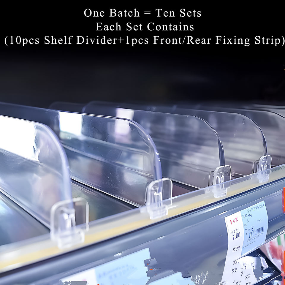 L'un est un ensemble:Chaque ensemble contient (10pcs étagère diviseur + 1pcs avant et arrière bande de fixation)