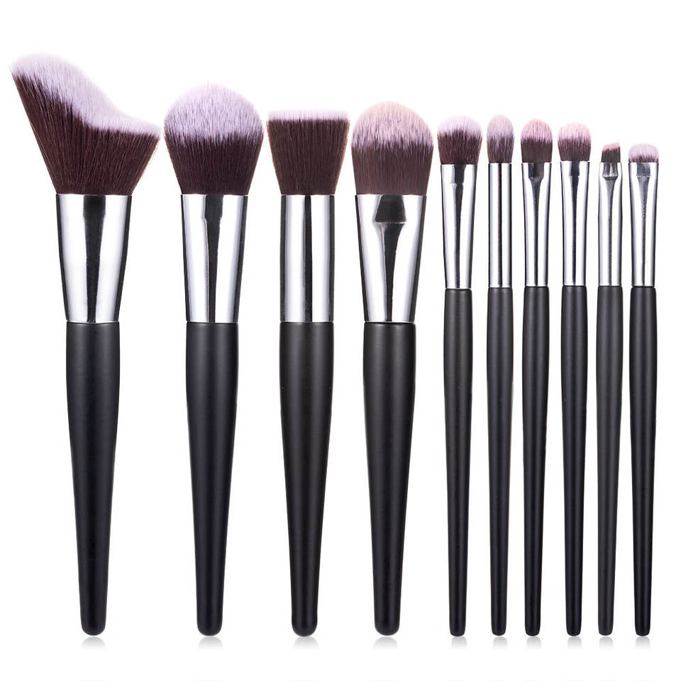 10PCS Marque privée Vegan Cheveux synthétiques Manche en bois Pinceaux de maquillage noirs Cosmétique Logo personnalisé Ensemble de pinceaux de maquillage