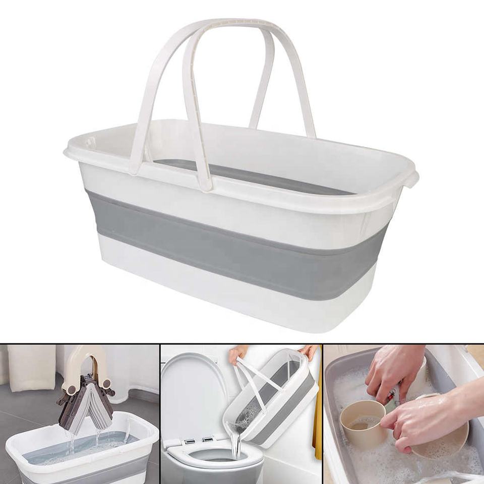 Lot de 10 outils de nettoyage ménager : Seau à serpillière portable et pliable, bassin rétractable pour la pêche, seaux pliables pour le camping et le lavage de voiture