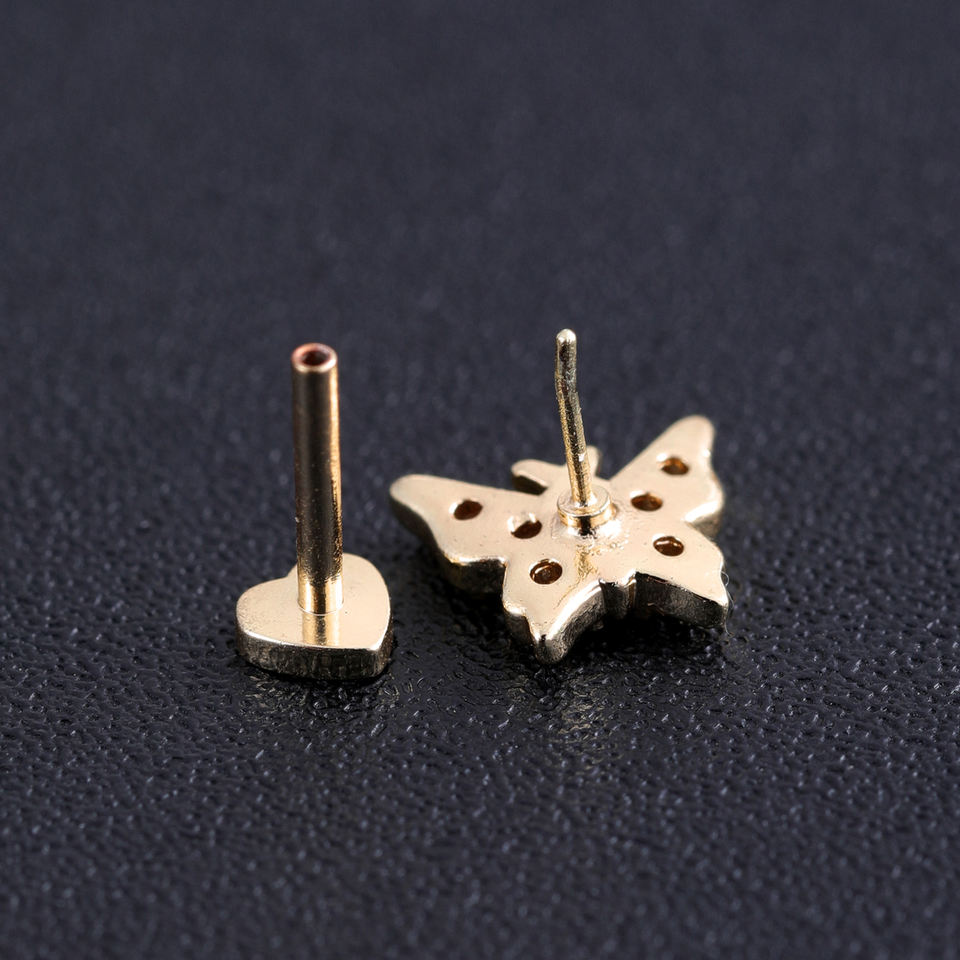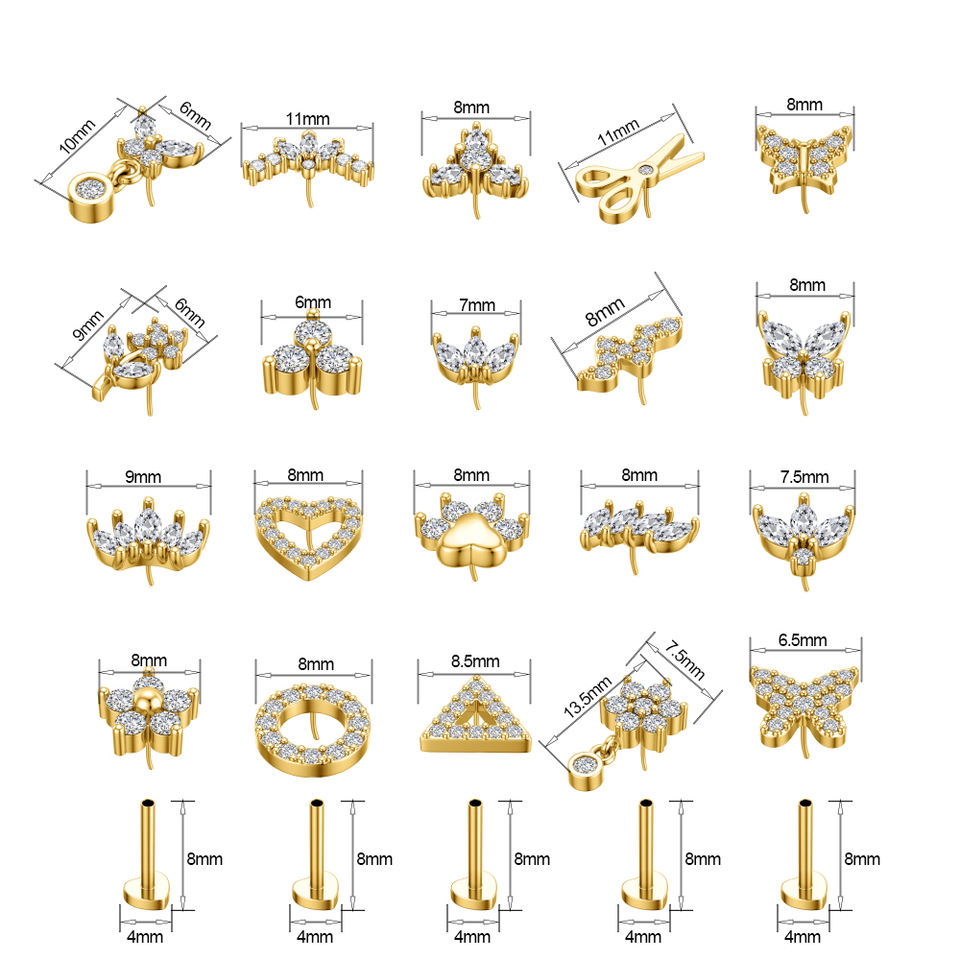 10 pièces/ensemble or hélice Tragus boucle d'oreille goujon 18g 8mm sans fil pousser dans boucle d'oreille Labret dos plat fleur Cartilage Piercing bijoux