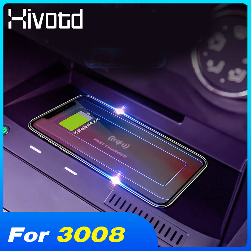 Chargeur sans fil QI 10W pour voiture, accessoires intérieurs, plaque de charge rapide, support de téléphone pour Peugeot 3008 2018-2021