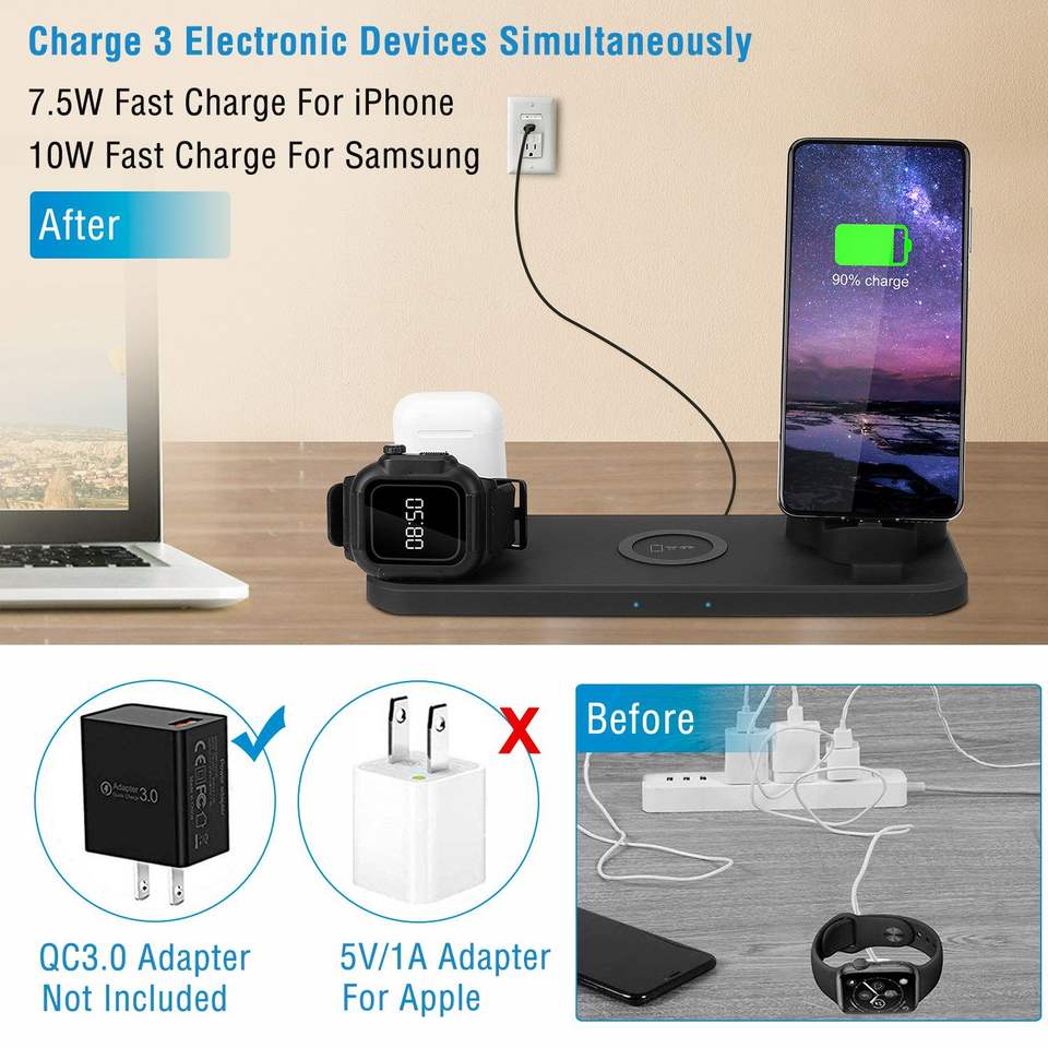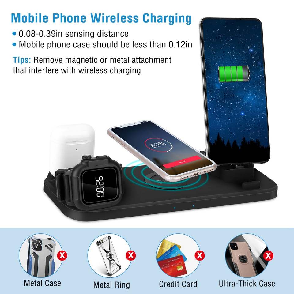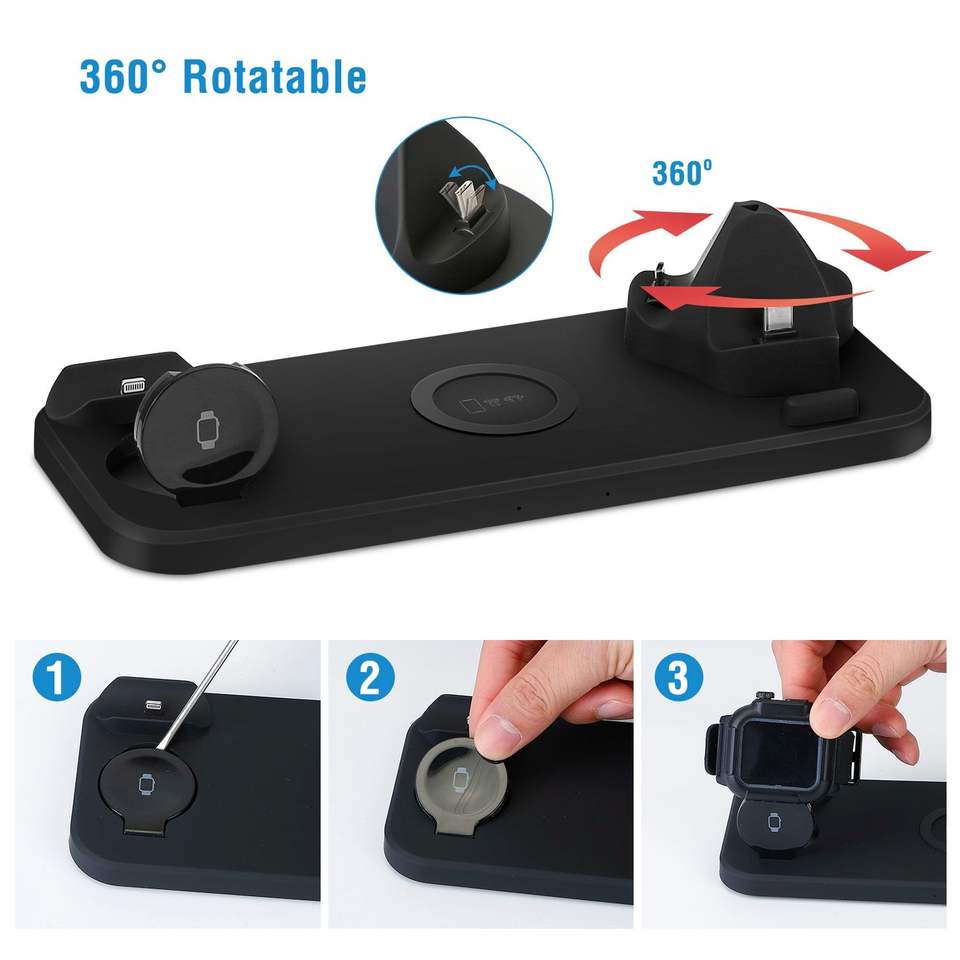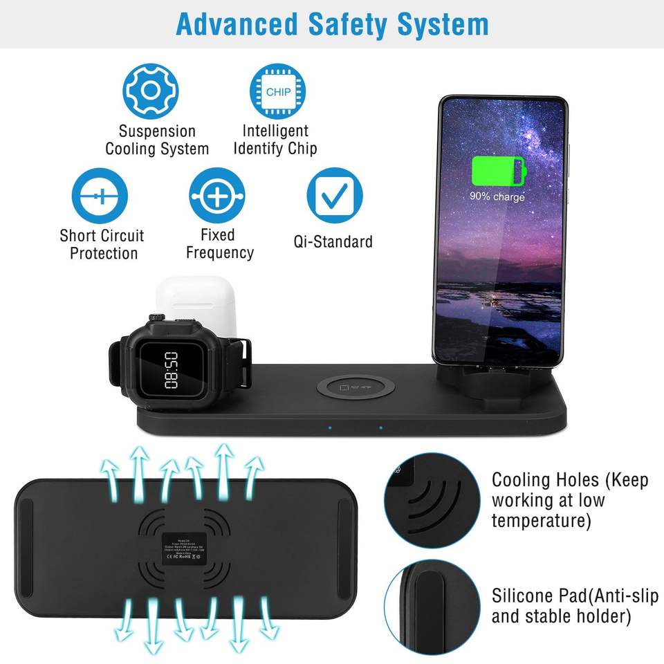 Station de charge sans fil rapide Qi 10W, chargeur multifonction 6-en-1