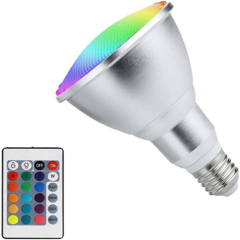 Projecteur LED PAR30 RGB 10W E27/E26 à changement de couleur, ampoule étanche pour extérieur avec télécommande pour décorations de fêtes