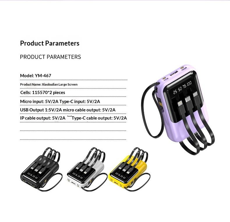 Charge rapide 10W, protocole QC2.0, format de poche, poFonction