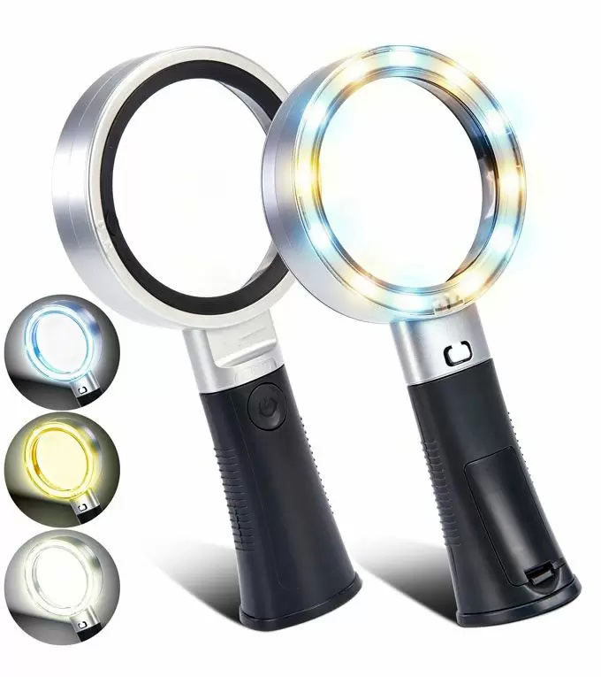Loupe portative et sur pied 10X avec 12 lumières LED SMD (blanc/jaune/blanc+jaune)