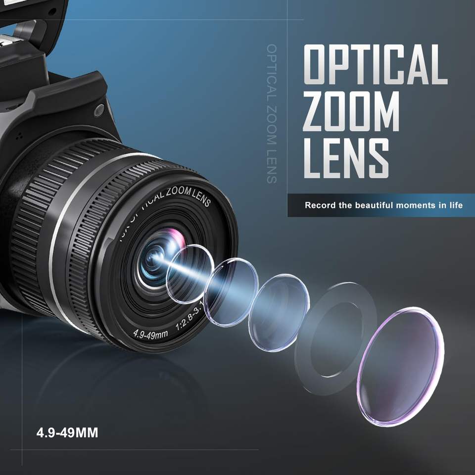 Caméra Vidéo avec Zoom Optique 10X, Résolution 4K Ultra HD, Fonctions DSLR pour Vlogging YouTube, Capteur CMOS, Prise en Charge Carte SD