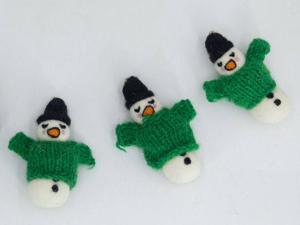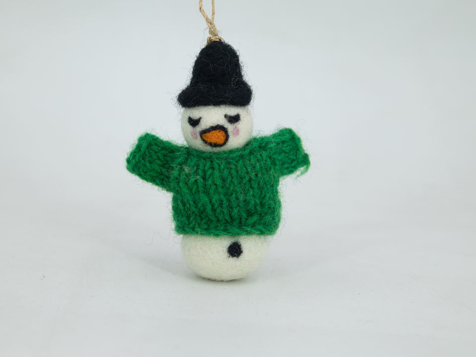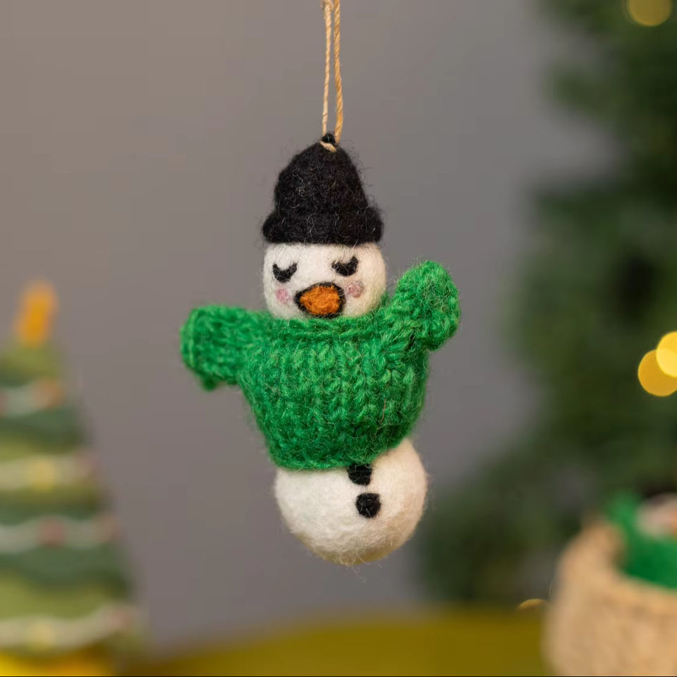 Bonhomme de neige d'hiver en feutre de laine de 10cm feutré à la main par un artisan népalais pour les ornements de décoration de chambre de Noël pour enfant