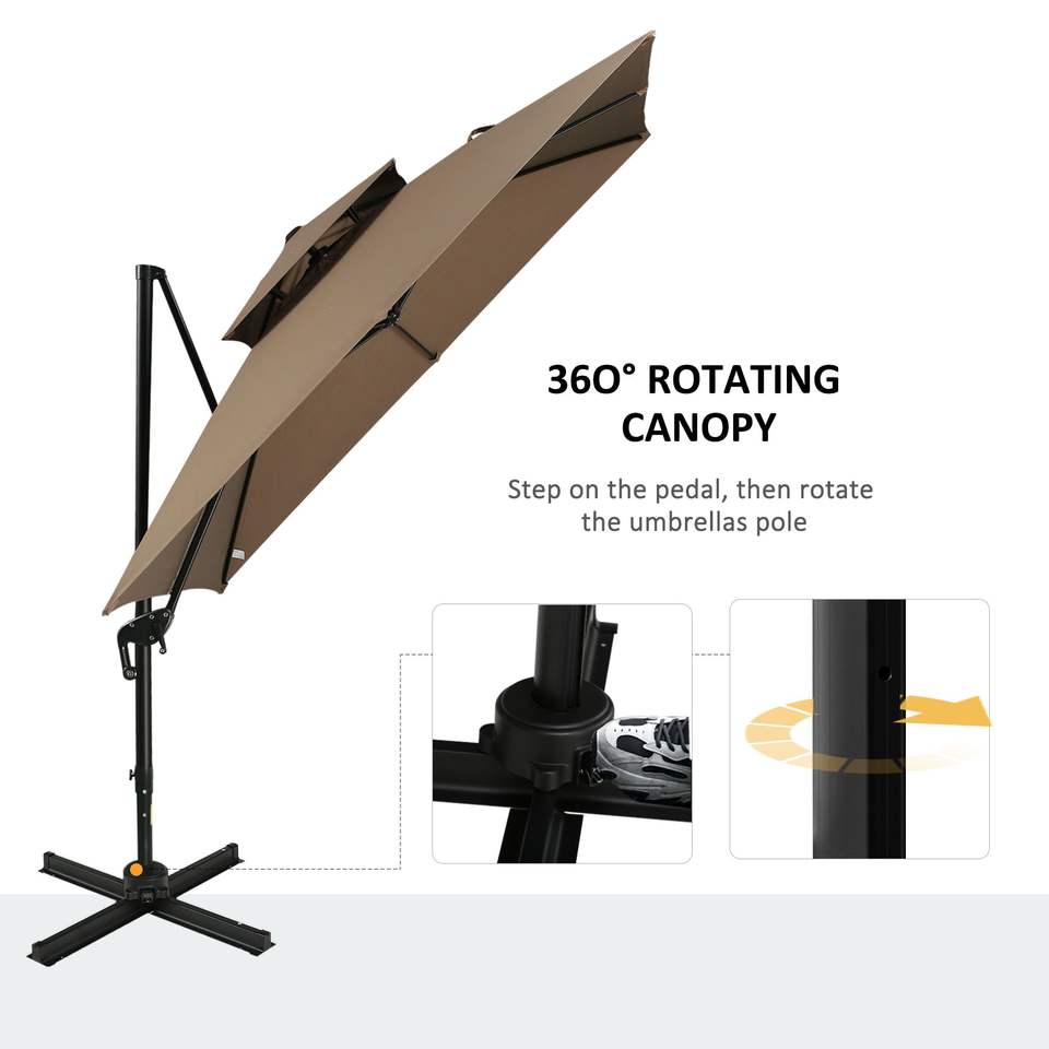 Parasol de terrasse déporté de 3 m à double plateau en aluminium, rotation à 360 degrés, inclinaison facile, 8 bâtons, qualité supérieure pour extérieur
