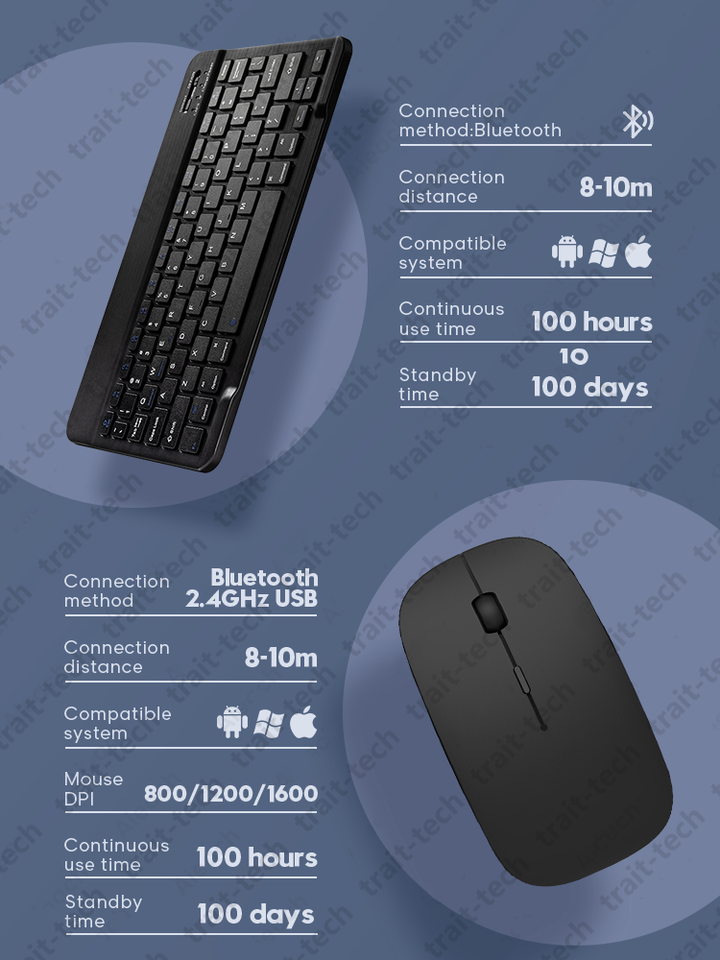 10 pouces mince Portable Mini pour IOS Android tablette PC apple Mobile ipad Bt sans fil clavier souris Combos clavier