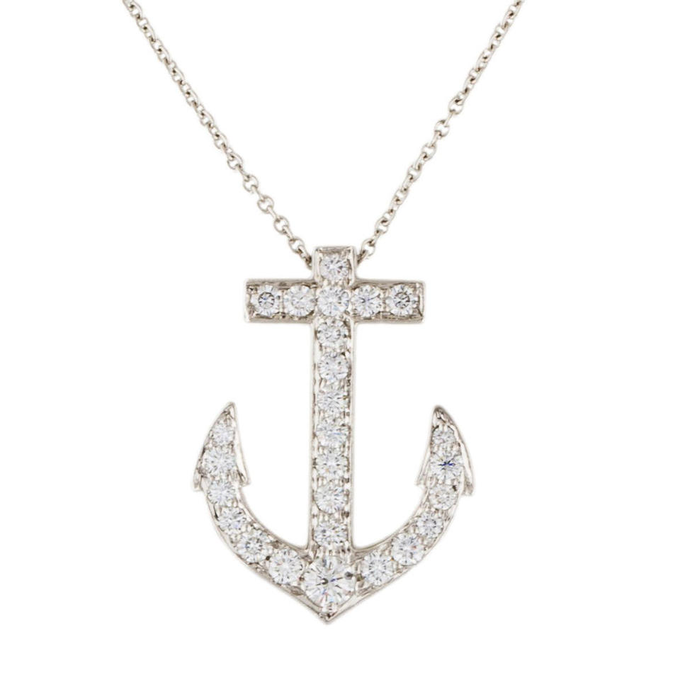 Pendentif ancre en diamant naturel rond en or blanc 10kt style tendance sans chaîne pour les occasions de fête