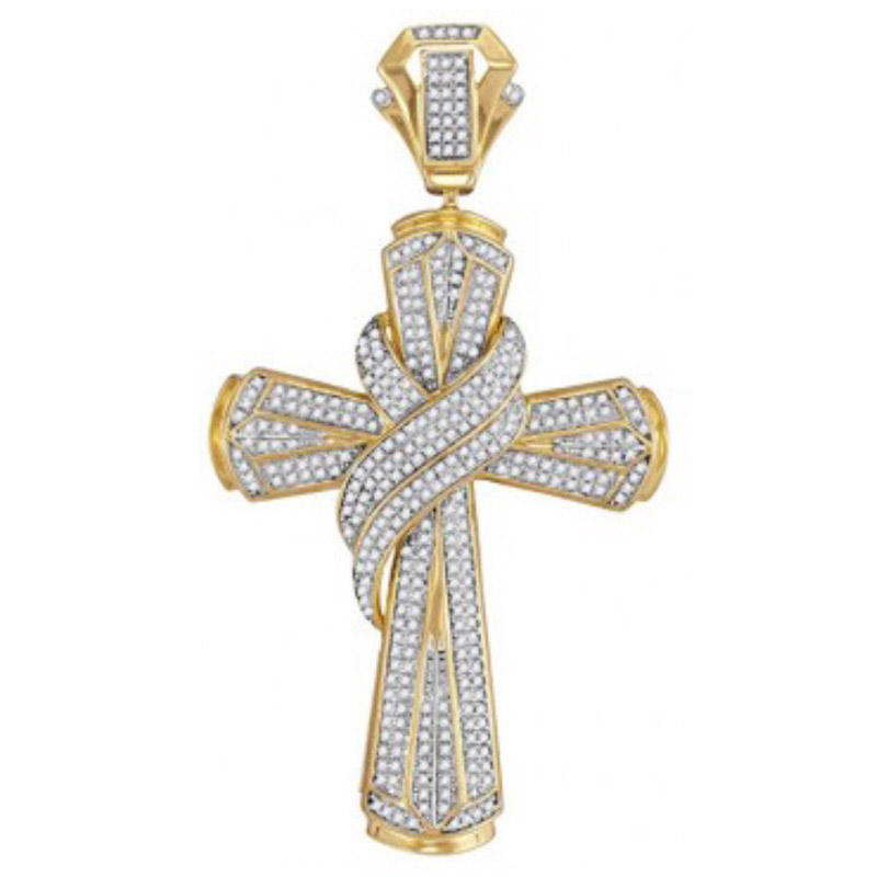 10kt Yellow Gold Mens Round Diamond Cross Charm Pendant 1.25Cttw