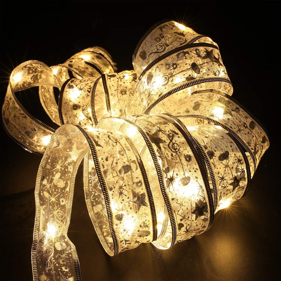 10m arbre de noël ruban lumières fil de cuivre Double ruban brillant arcs Led fée cordes lumières ruban de noël avec lumière led