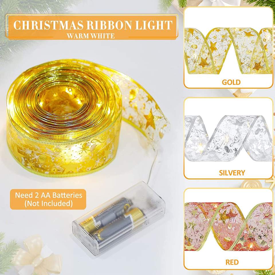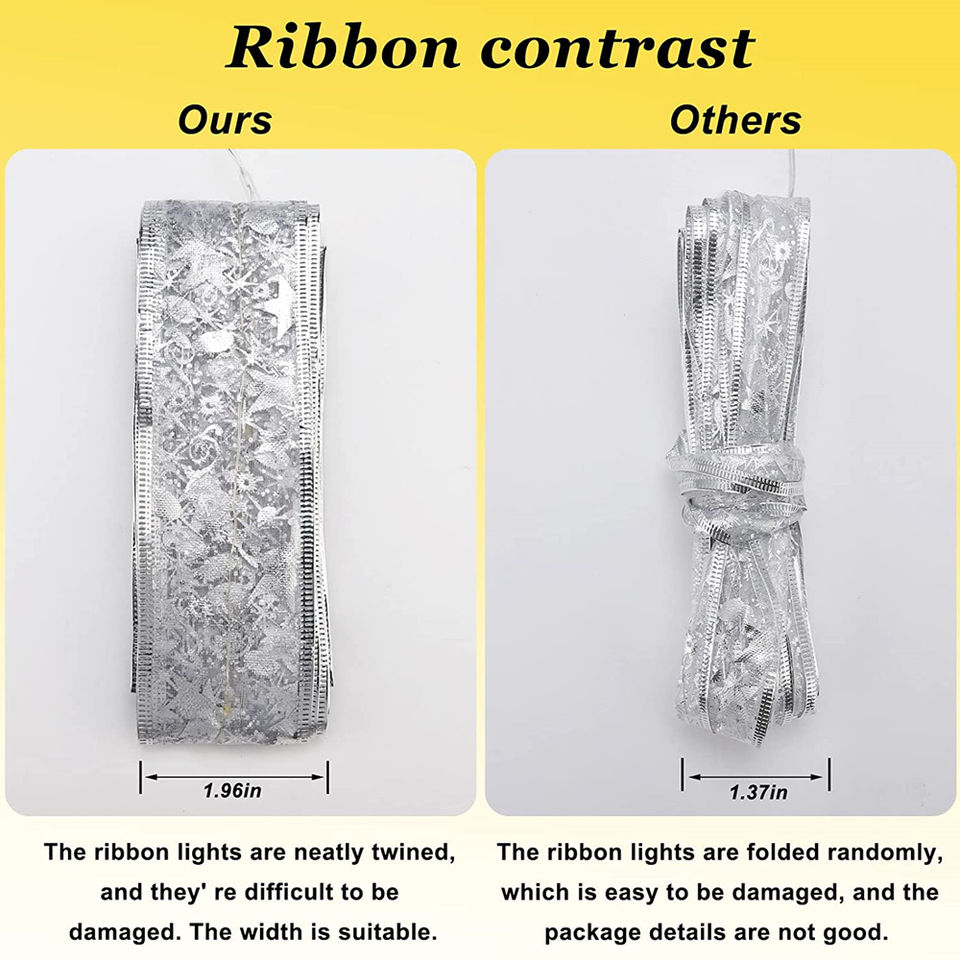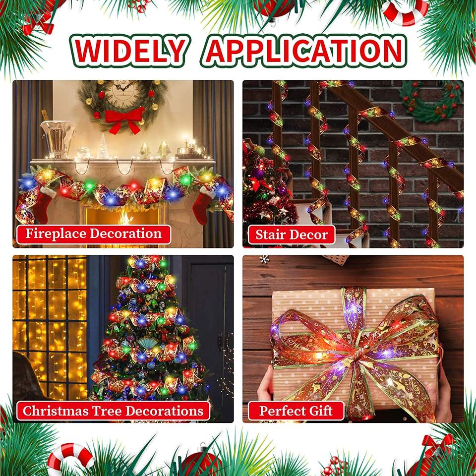 10m Christmas Tree Ribbon Lights Copper Wire Double Ribbon Glowing Bows Led Fairy Strings Lights Christmas Ribbon With Led Light