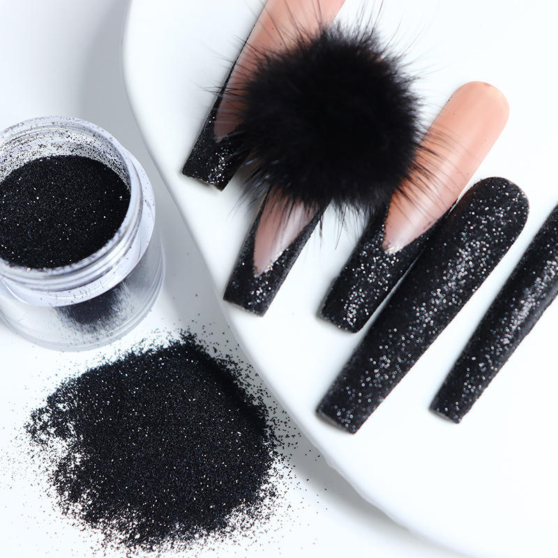 Poudre de laine écologique PET 10 ml, paillettes pour ongles, effet de revêtement holographique, luxe noir et blanc