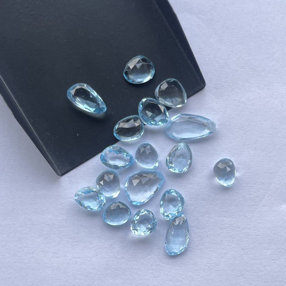 Product Name:Natural Sky Blue Topaz Free Size Faceted Rose Cut Polki Slices