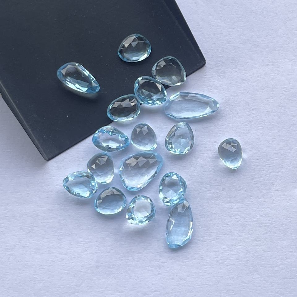 Product Name:Natural Sky Blue Topaz Free Size Faceted Rose Cut Polki Slices