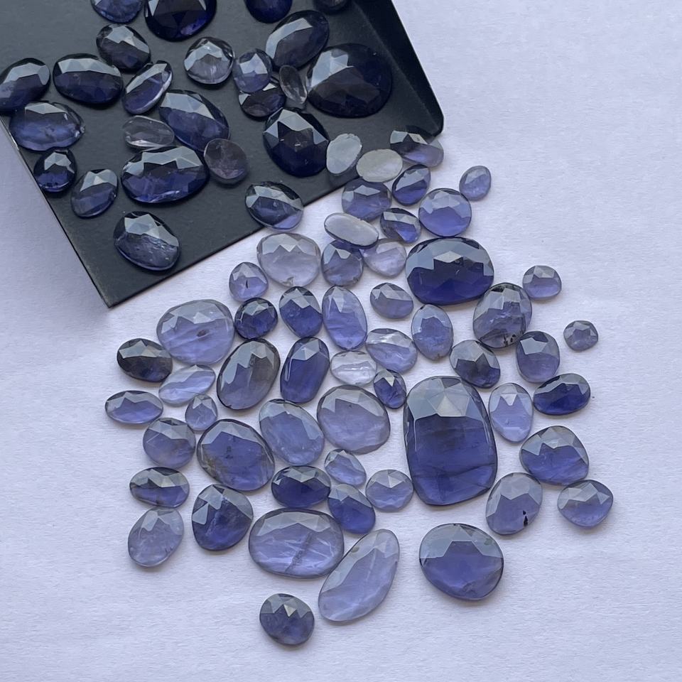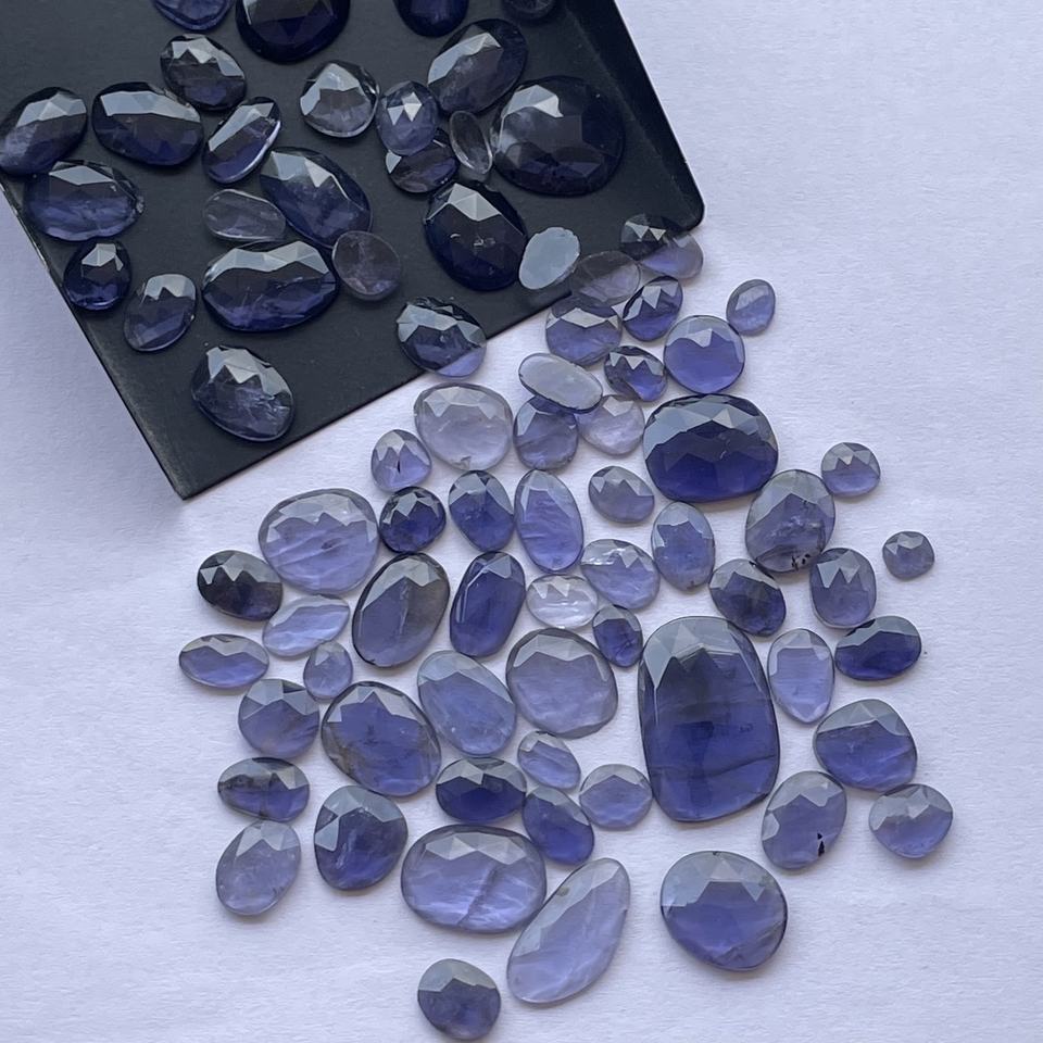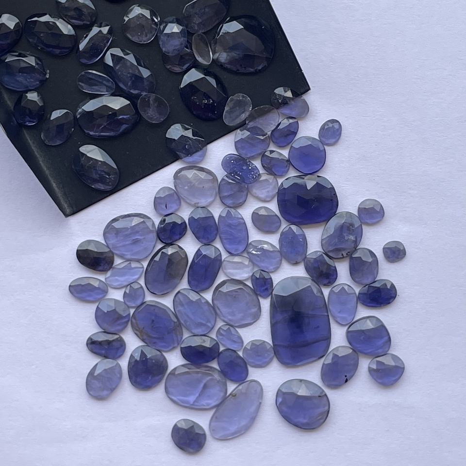 Product Name:Natural Iolite Stone Free Size Faceted Rose Cut Polki Slices